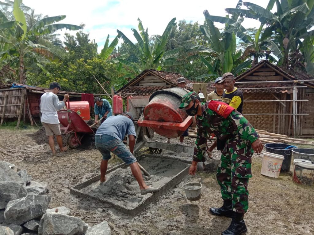 “Agar pembangunan cepat selesai, kami dari Koramil mengajak warga masyarakat sekitar untuk bergotong royong melakukan pengecoran. Dengan banyaknya jumlah warga yang turut membantu tentu akan mempercepat pekerjaan ini sehingga proses pembangunan cepat selesai,” tuturnya.