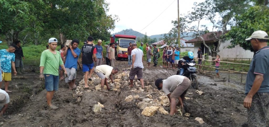 “Ruas jalan ini selalu menjadi kubangan air dan lumpur setiap musim hujan, yang bisa mengakibatkan terjebaknya kendaraan dan menyebabkan kecelakaan yang tentunya menghambat arus transportasi,” Jelas Nardus